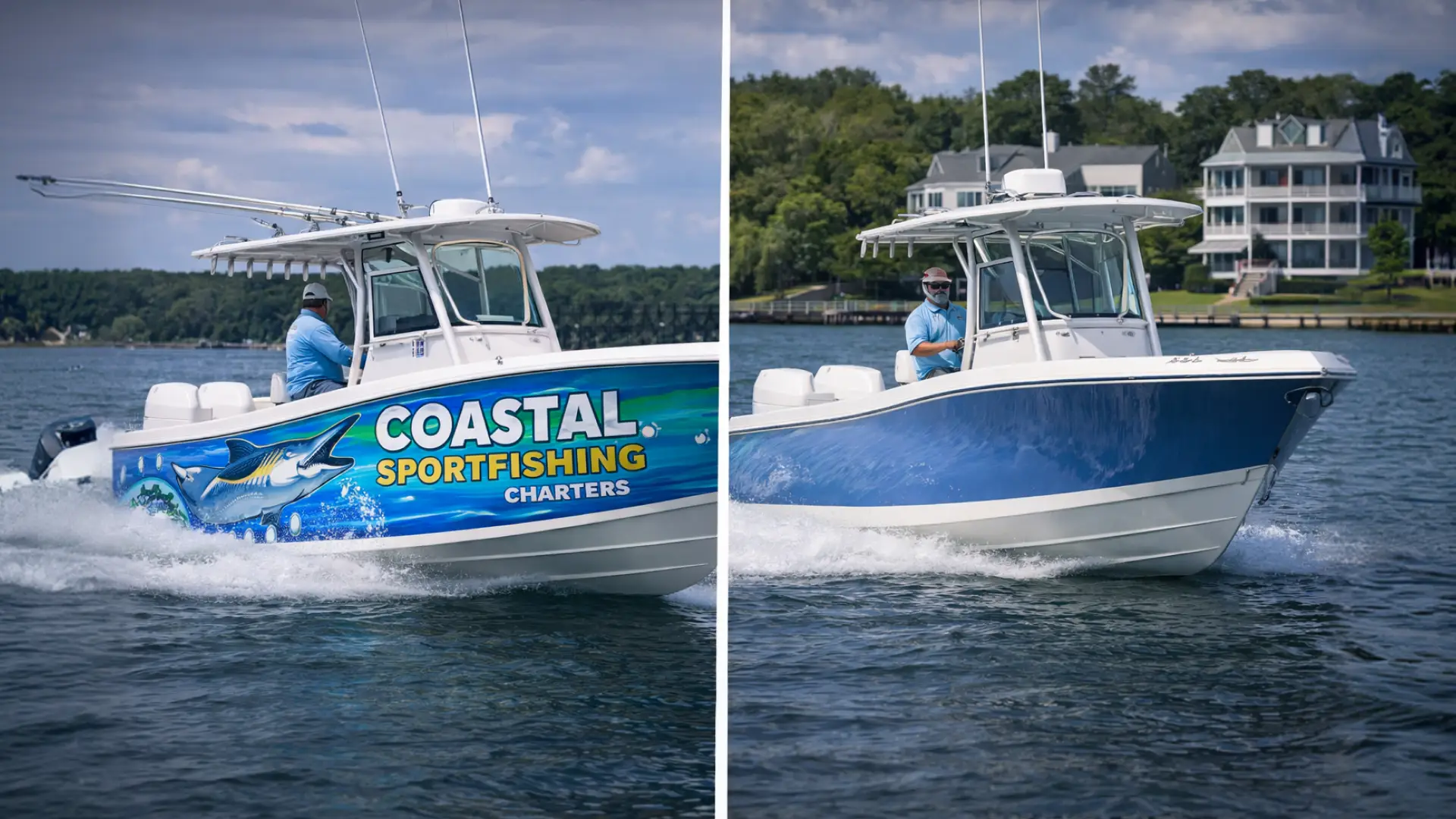 This comparison shows that both methods can improve the appearance of a boat, but they support branding in different ways.